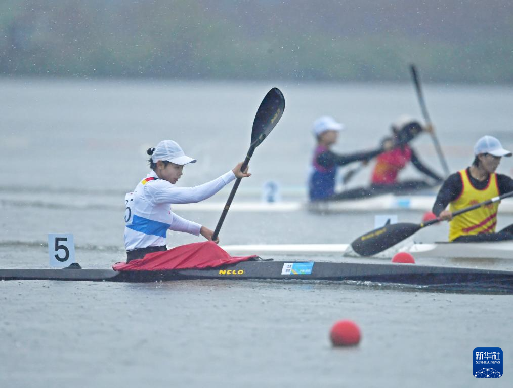 10月29日,遵义市选手冯玉玲(右)在女子单人划艇200米决赛中。最终,冯玉玲以47秒564的成绩夺得该项目冠军。