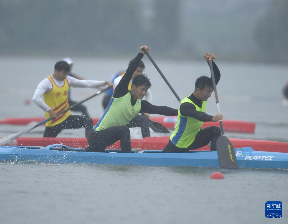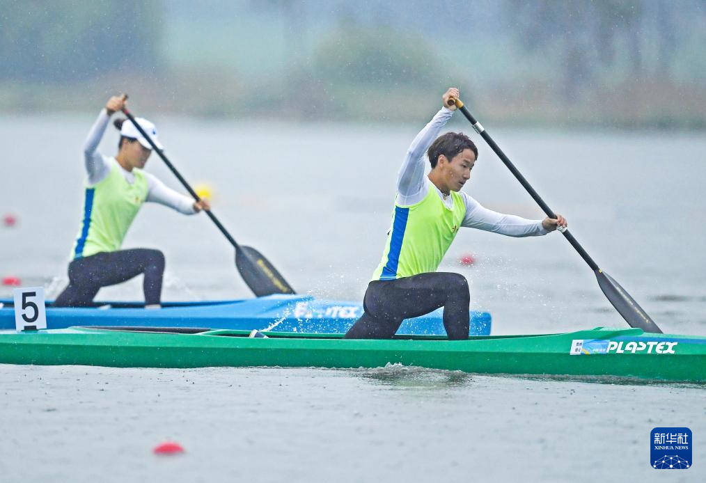 10月29日,遵义市选手雷宇航(右一)/陈兵在男子双人划艇500米决赛中。最终,他们以1分44秒151的成绩夺得该项目冠军。