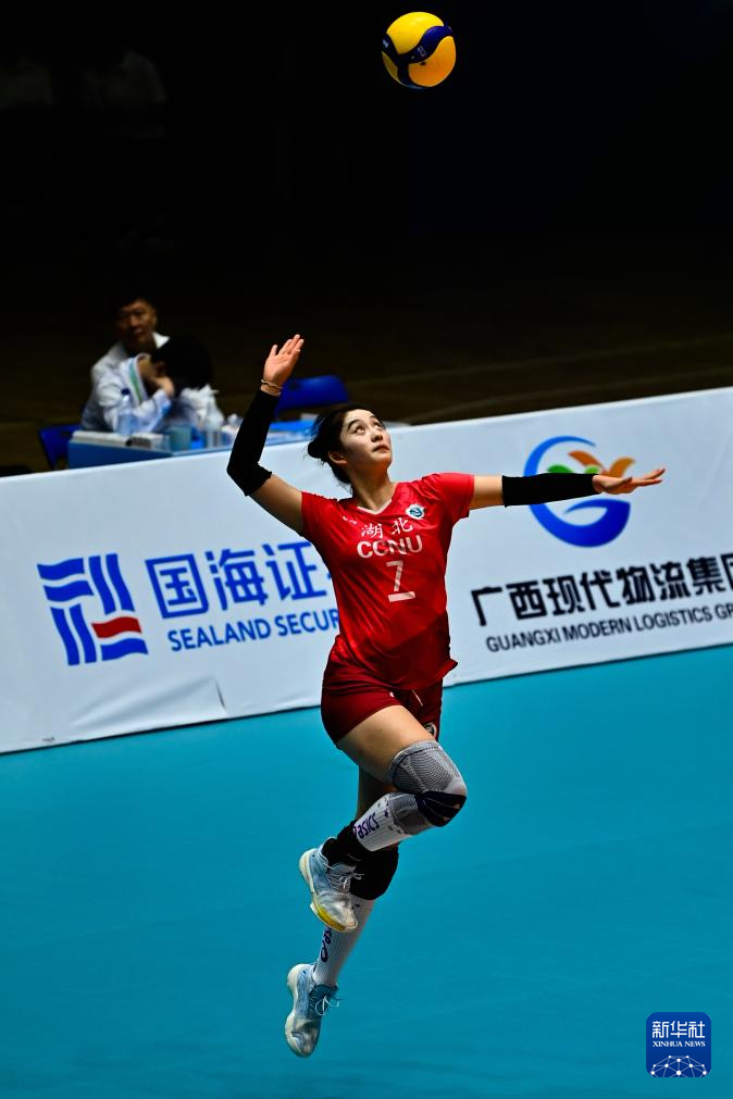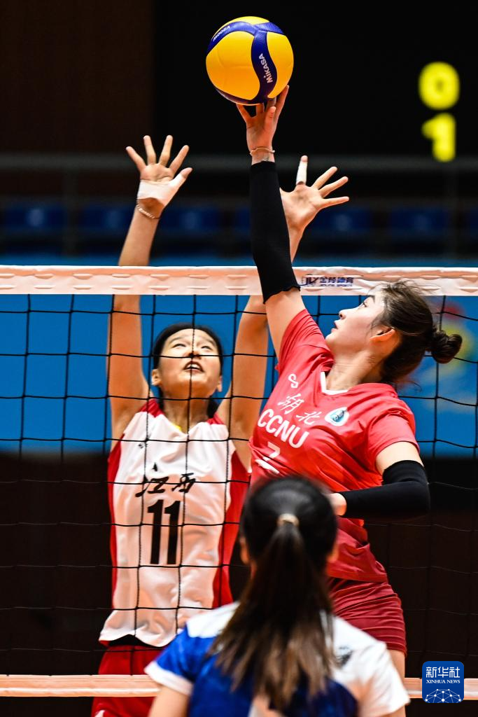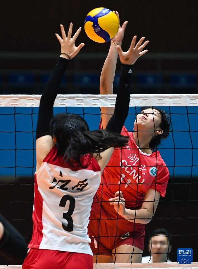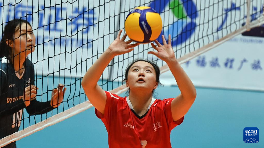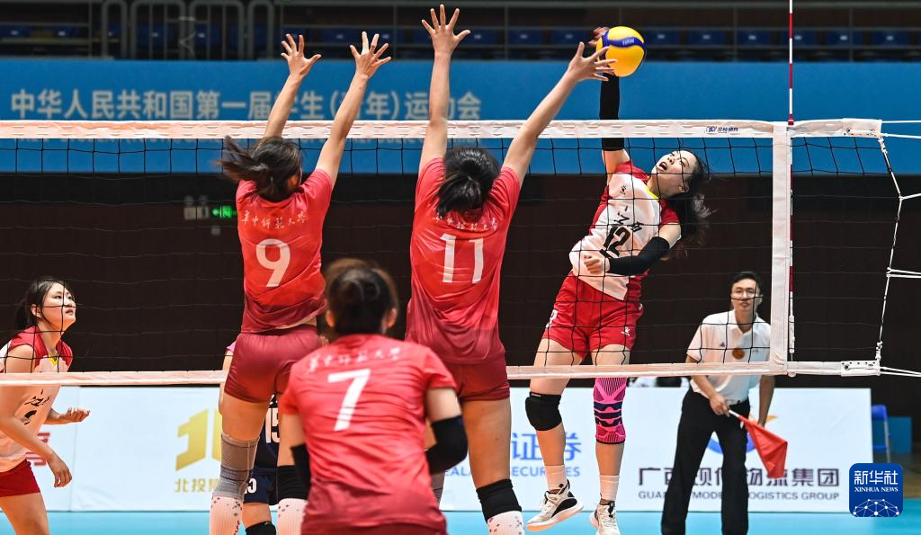 当日,第一届全国学生(青年)运动会(校园组)排球大学女子组小组赛第三轮比赛在广西钦州举行。