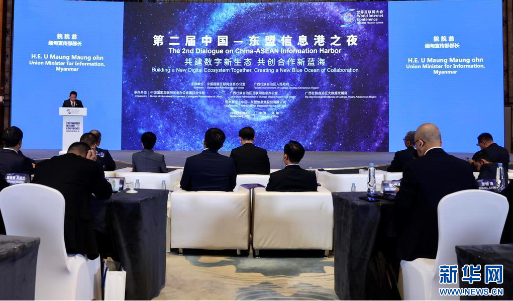 新华网杭州11月9日电 8日晚,2023年世界互联网大会乌镇峰会“中国—东盟信息港之夜”活动在浙江乌镇举行。活动以“共建数字新生态 共创合作新蓝海”为主题,由国家互联网信息办公室、广西壮族自治区人民政府主办。