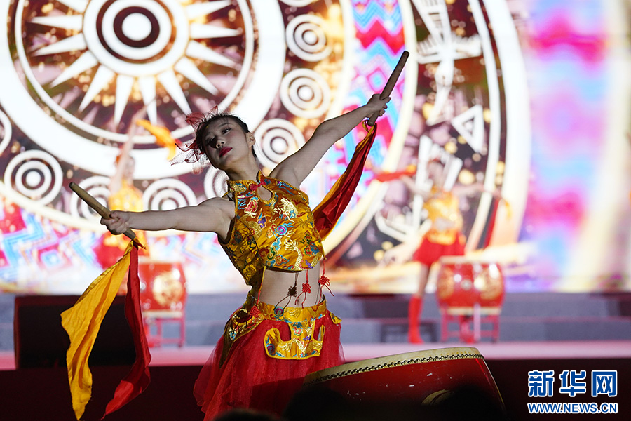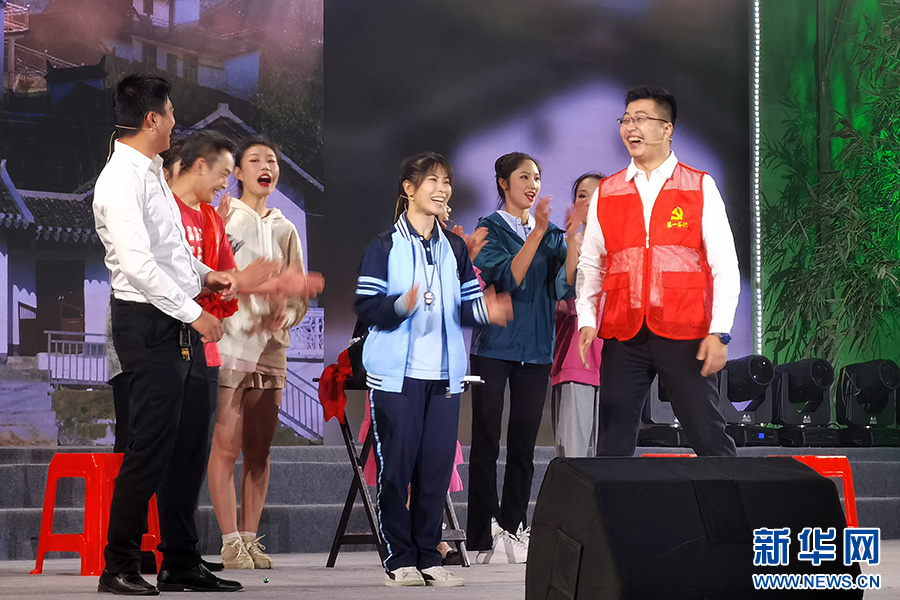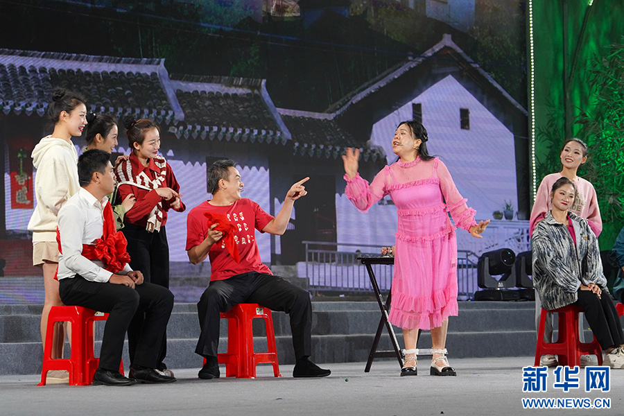 演员在良庆区2023年民俗文化旅游节上表演精彩的文艺节目