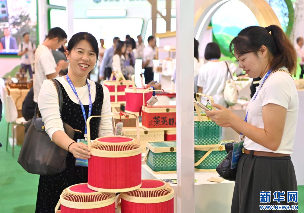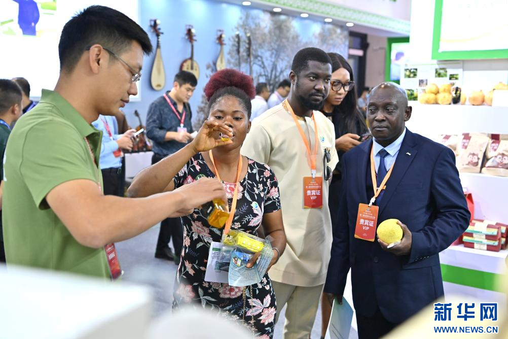11月25日,观众在南宁国际会展中心品尝茶油饮品。