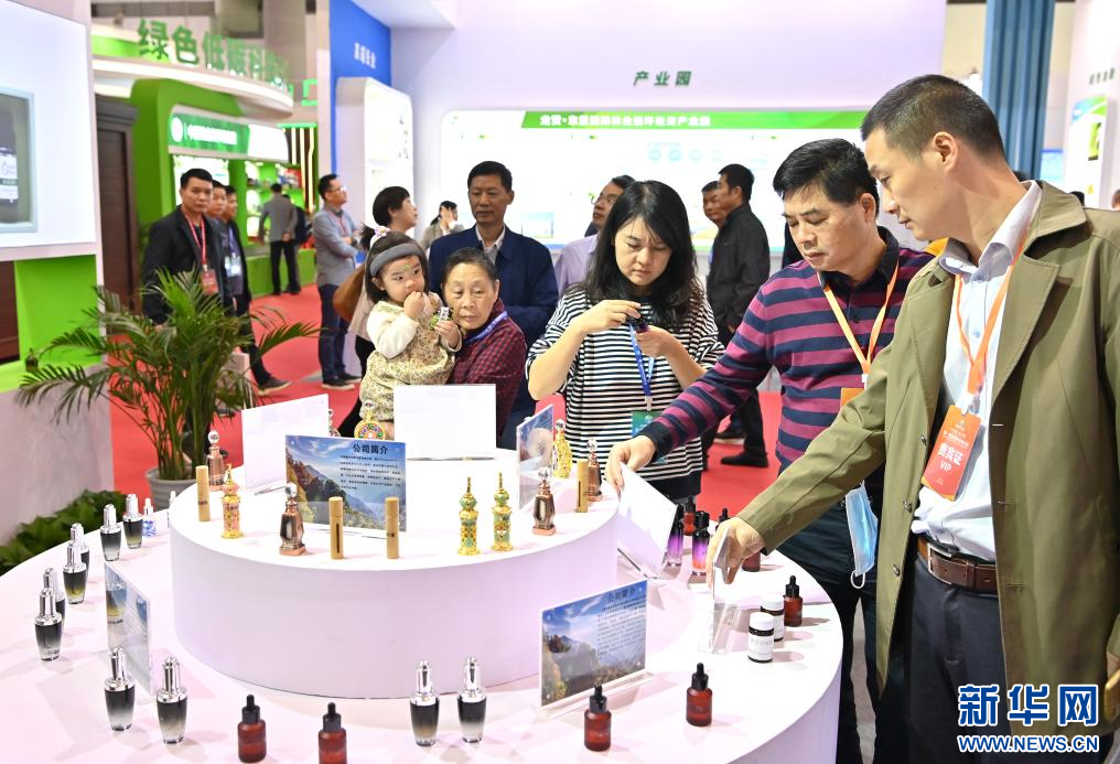 11月25日,观众在南宁国际会展中心参观石斛新品种。