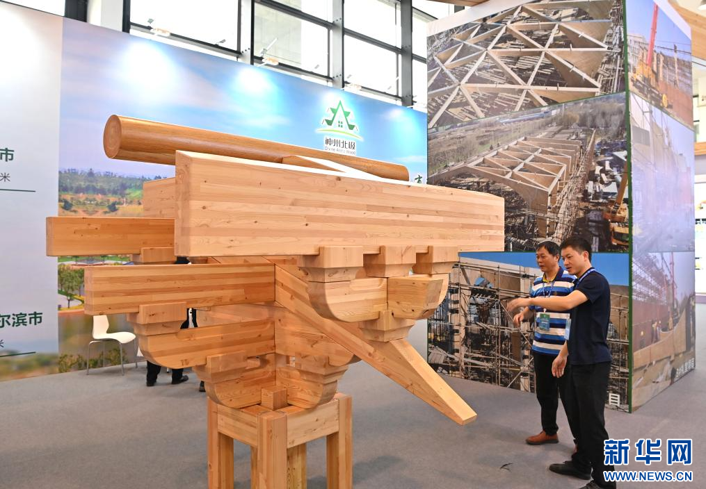 11月25日,观众在南宁国际会展中心参观榫卯结构模型。