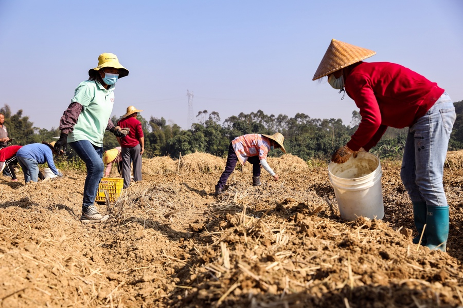 为抢抓秋冬播种“黄金期”,容县统筹推进冬种工作,推广优良品种,落实配套技术,组织农技人员深入田间地头进行实地技术指导,全力帮助种植户解决冬种相关技术难题,充分利用冬闲田等种植马铃薯、蔬菜等农作物,以“不荒一亩良田、不误一刻农时”的态度推进冬种工作,助力农业增产、农民增收。“容县今年冬种面积将达22.3万亩,预计种植马铃薯1.3万亩,蔬菜18.3万亩,我们为种植农户提供技术服务,让农民掌握冬种技术,提高农作物产量,增加农民的收入。”广西乡村科技特派员、容县农业技术推广站站长杨树东说道。(陈奋 陈洁)