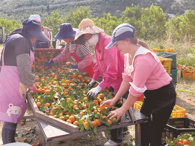近日,在大化瑶族自治县贡川乡清坡村山泉种养合作社沃柑、砂糖橘种植基地,果农们正忙着采摘成熟的沃柑。