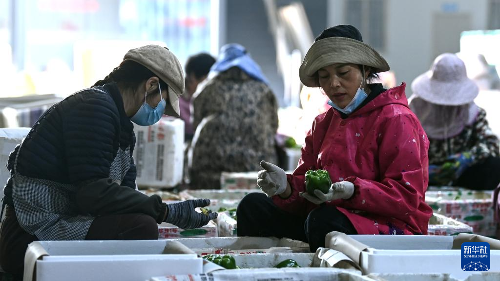 12月27日,在合浦县沙岗镇一家农业公司的分拣仓,当地村民在分拣辣椒。