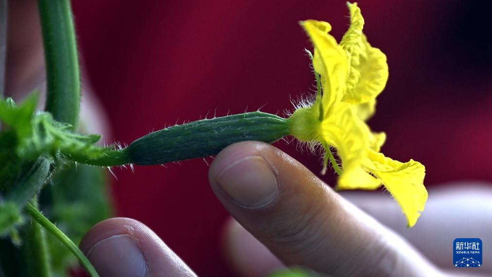 合浦县沙岗镇一家农业公司智能大棚内培育的小黄瓜(12月27日摄)。