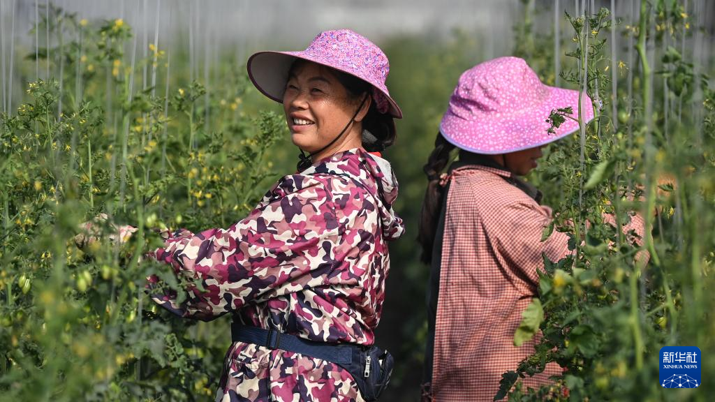 12月27日,在合浦县沙岗镇一家农业公司的智能大棚内,村民采摘成熟的小番茄。