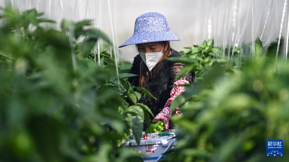 12月27日,在合浦县沙岗镇一家农业公司的智能大棚内,当地村民在收获辣椒。
