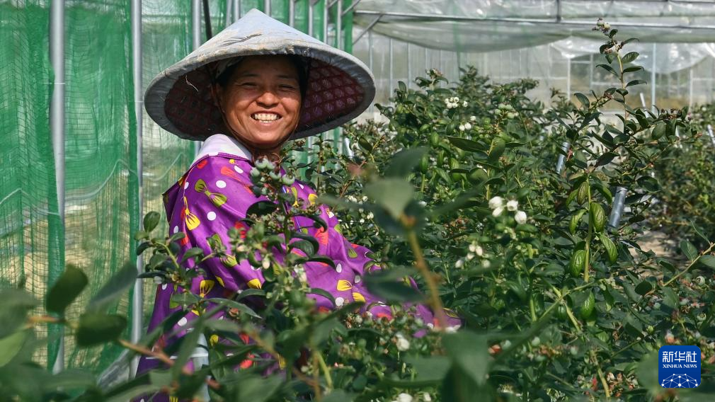 村民在广西合浦县闸口镇庆丰村一间蓝莓园里进行管护(12月29日摄)。