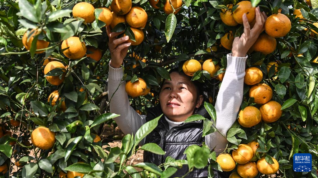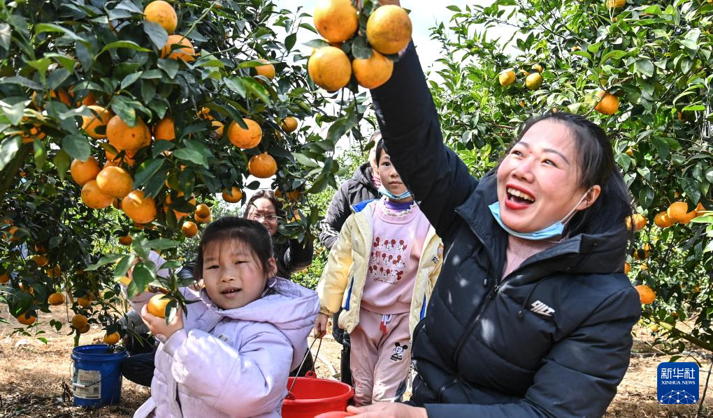 村民在广西合浦县石康镇一家柑橘园采摘柑橘(12月28日摄)。