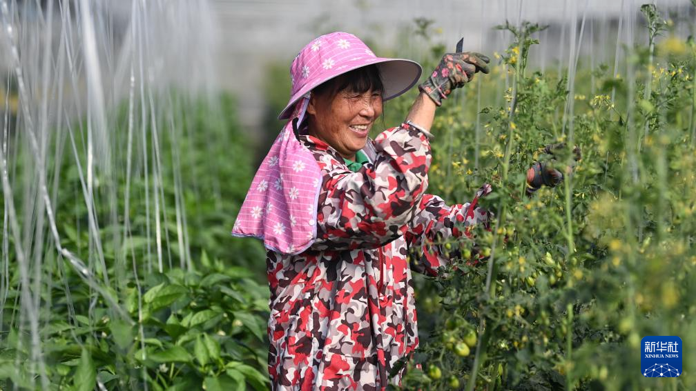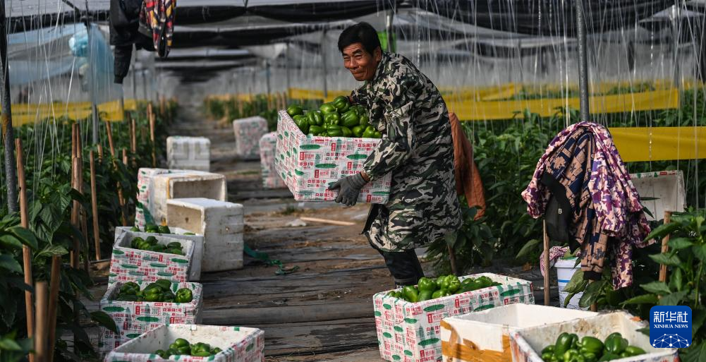 村民在广西合浦县沙岗镇一家农业公司的智能大棚内收水果椒(12月27日摄)。