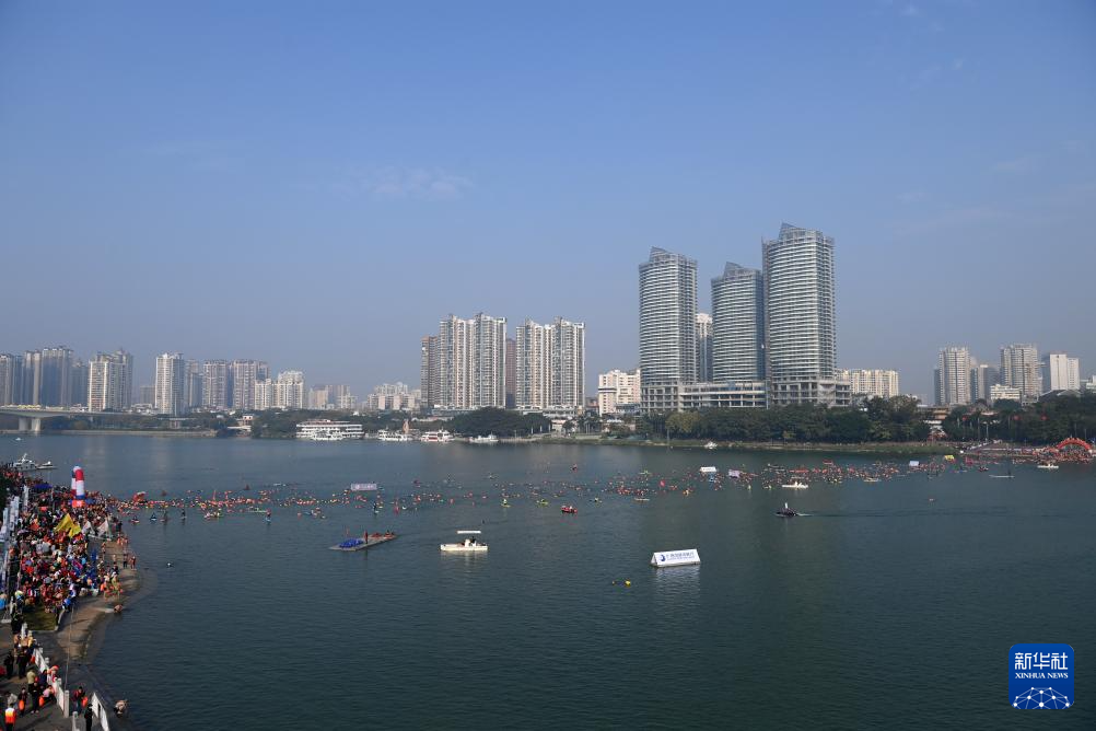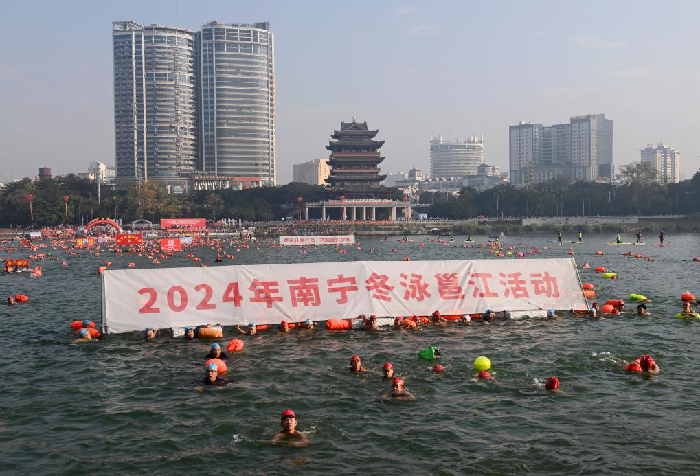 当日,2024年南宁冬泳邕江活动在广西南宁市举行,来自全国各地的3000多名游泳爱好者横渡邕江,以冬泳健身方式庆祝新年的到来。