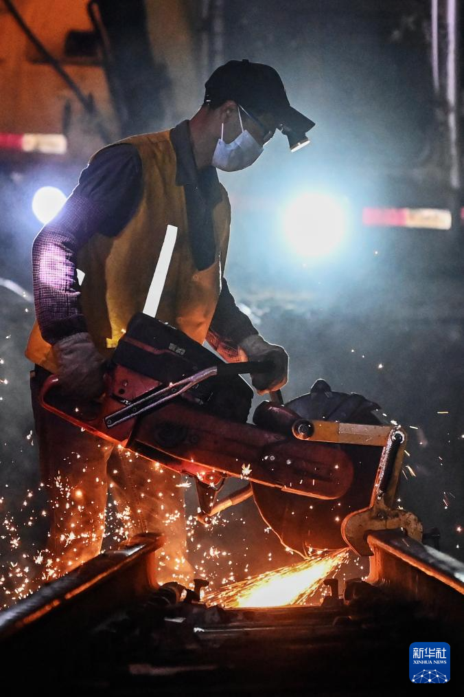 1月17日,在黎塘站,工人在更换受损铁轨。