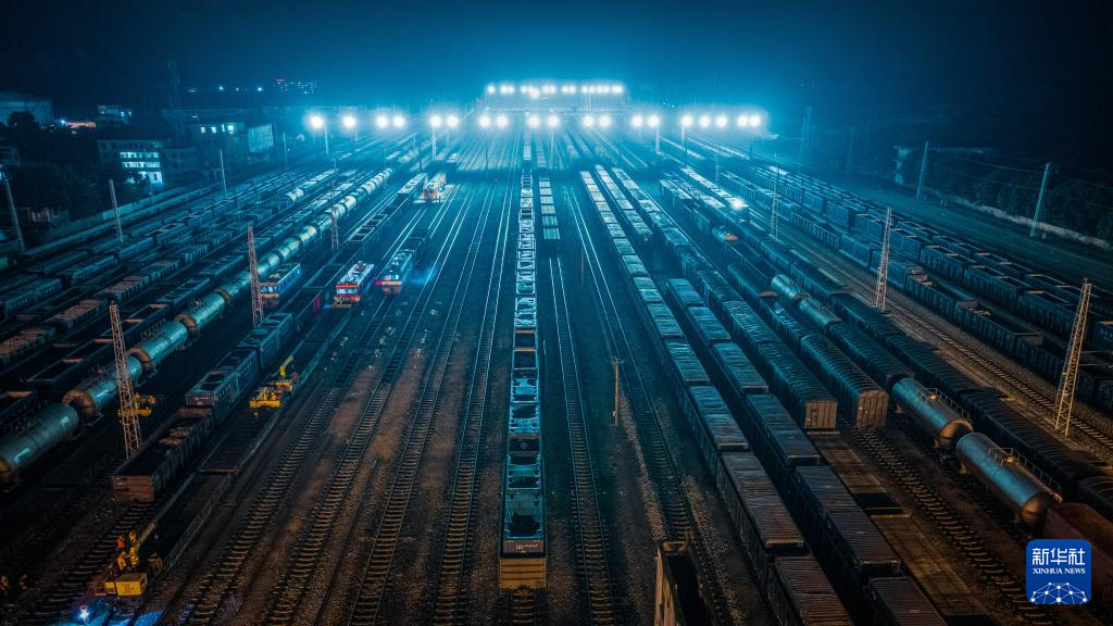 西部陆海新通道的重要节点——广西黎塘站编组场(无人机照片,1月17日摄)。