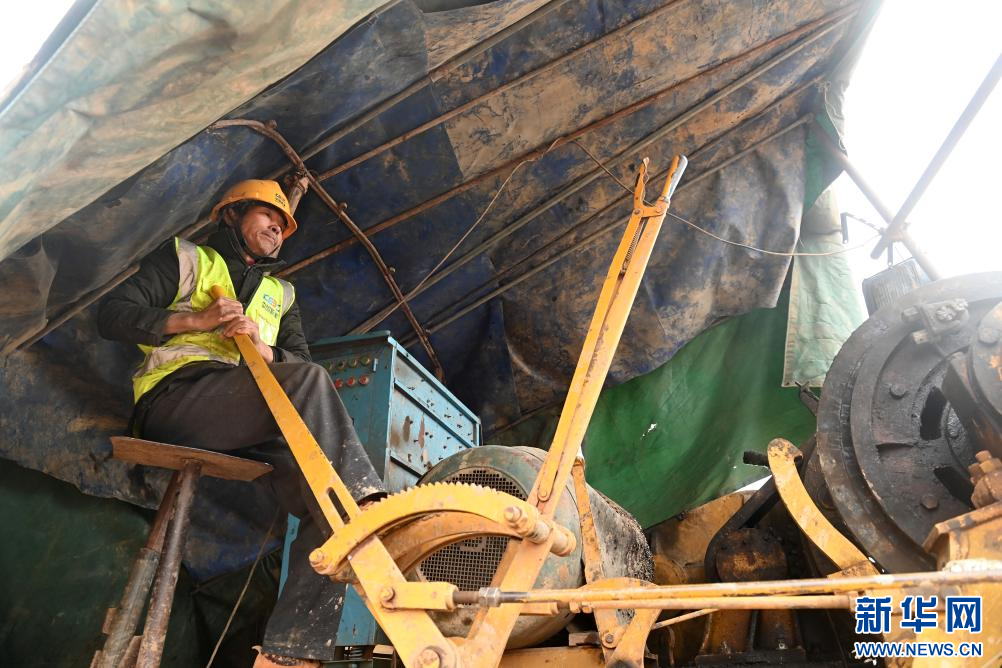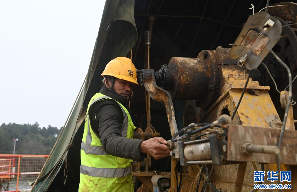 1月24日,何天云在广西全州至灌阳高速公路湘江特大桥建设现场施工作业。新华社记者 陆波岸 摄