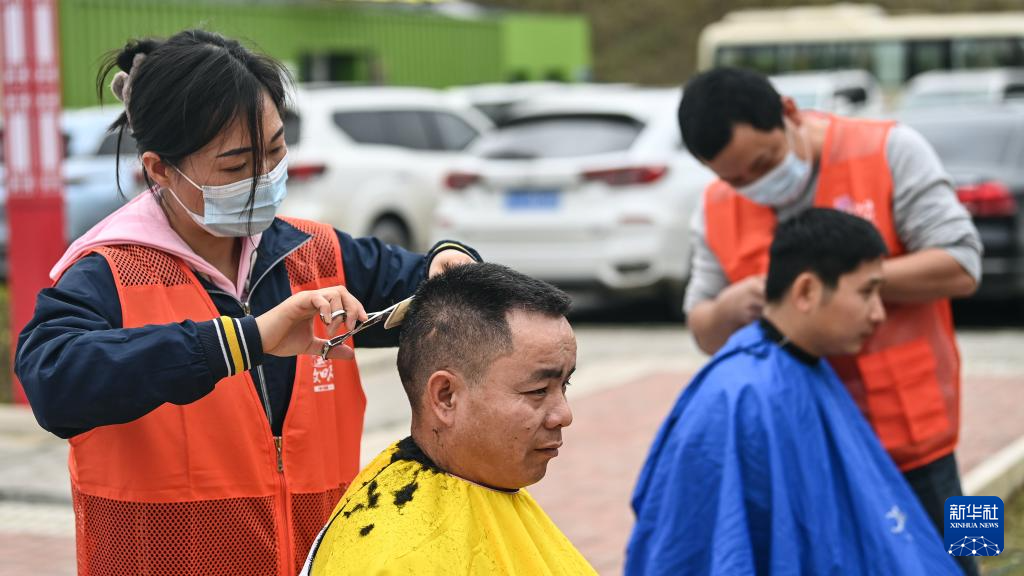 2月3日,理发师为职工们免费理发。