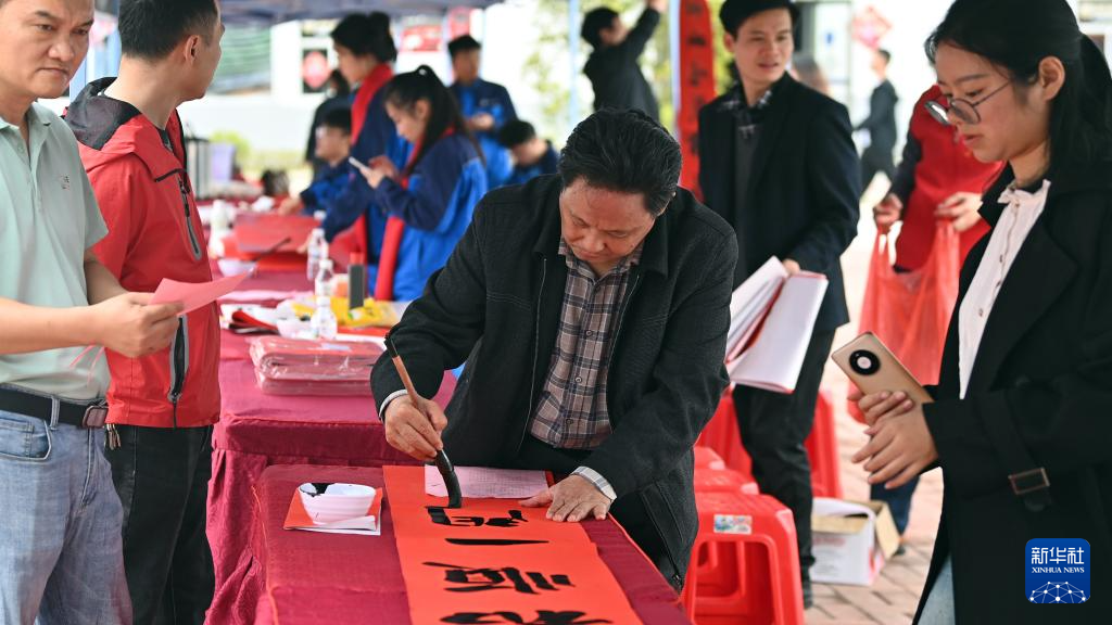 2月3日,书法爱好者为职工写春联。