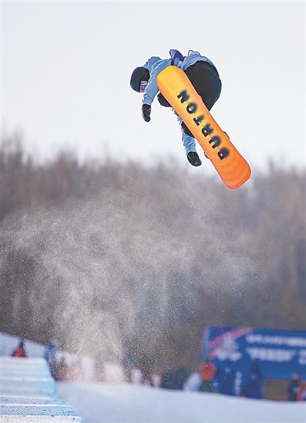 2月17日,张心昊在单板滑雪U型场地技巧青年组比赛中表现出色,夺得银牌。 李峰/摄