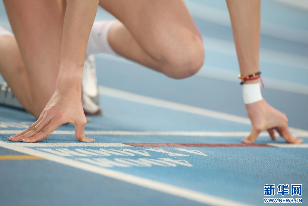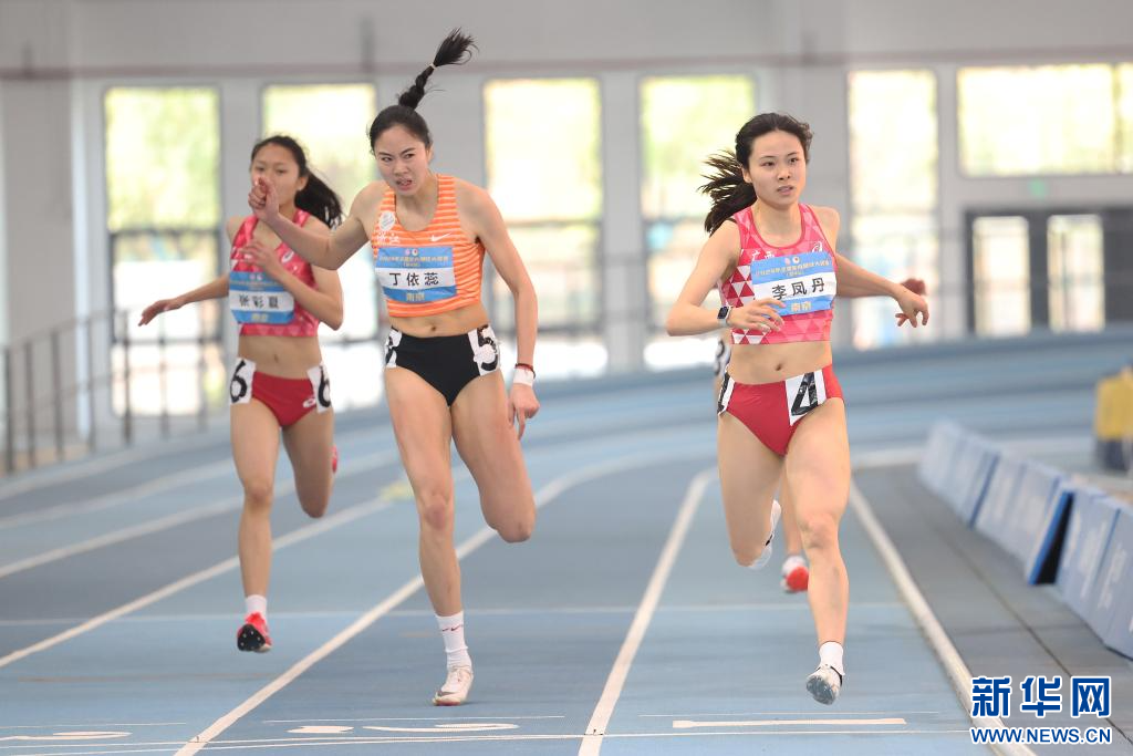 3月16日,浙江队选手丁依蕊在决赛前准备起跑。最终,她以55秒62的成绩获得亚军。