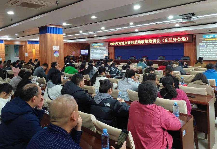 日前,广西河池市财政局举办2024年河池市政府采购政策培训,此次培训在市财政局设主会场、各县(区)财政局设分会场,采用线下+线上视频会相结合的方式,市、县(区)财政局领导班子成员、政府采购监督管理人员、各级主管预算单位负责政府采购业务人员参加本次培训。