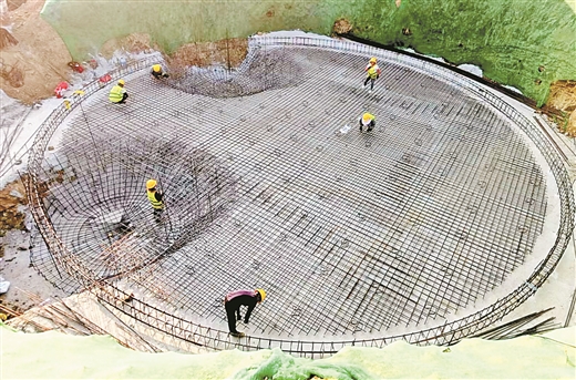 距离银屯进水口20多公里的山头,总干调压井主体工程已全部完工。整个灌区工程共有5座调压井,其可减轻压力管道的水击压力,保证灌溉系统正常运行。