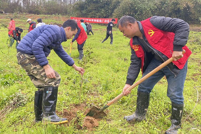 眼下正值春耕时节,在桂林市永福县广福乡党员干部、群众展开油茶种植工作。