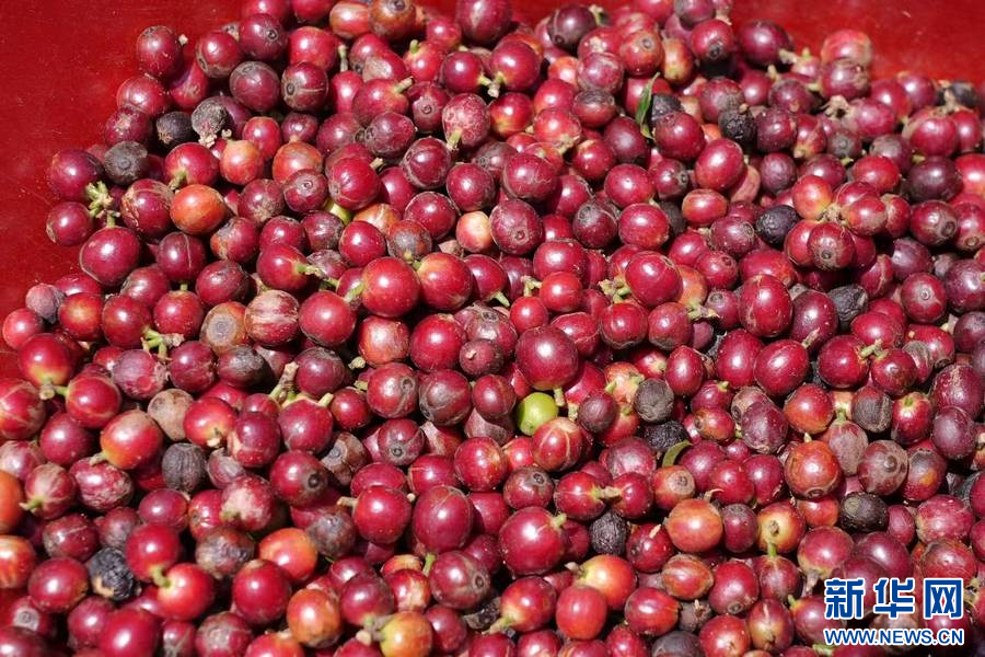 红彤彤的咖啡果。岑柳蓉 摄