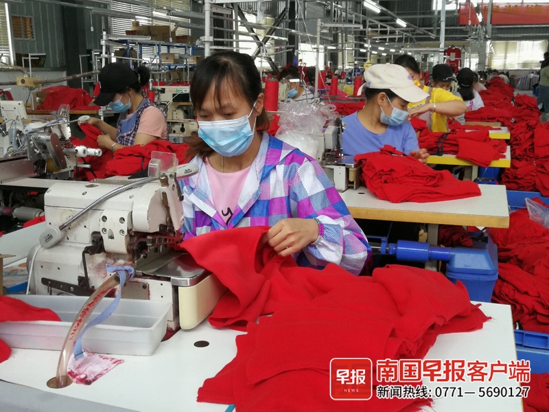 ▲广西一家服装制造企业的工人在车间忙碌。记者 刘冬莲 摄