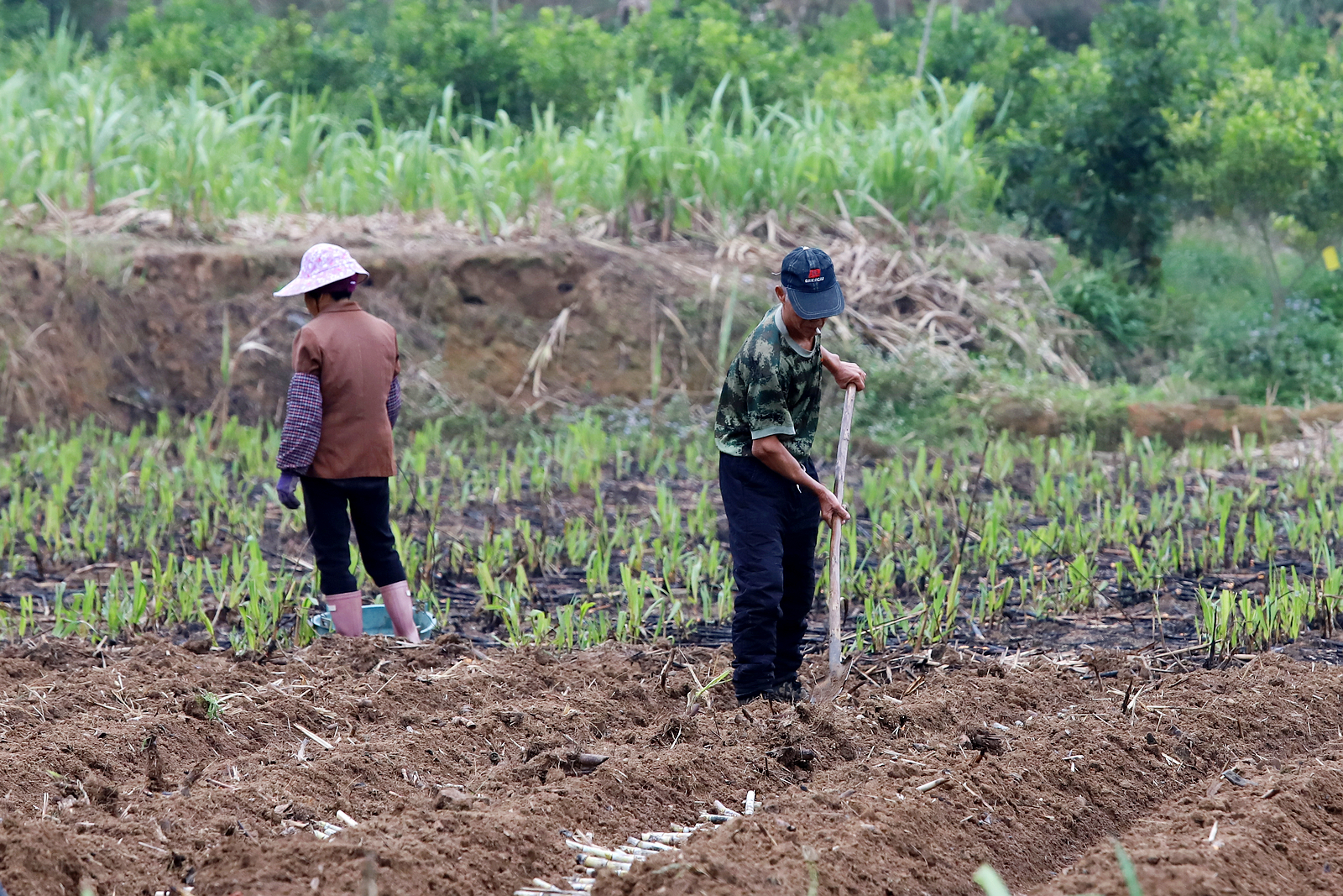 良庆区南晓镇福里村农民正在种植甘蔗。闭业然 摄