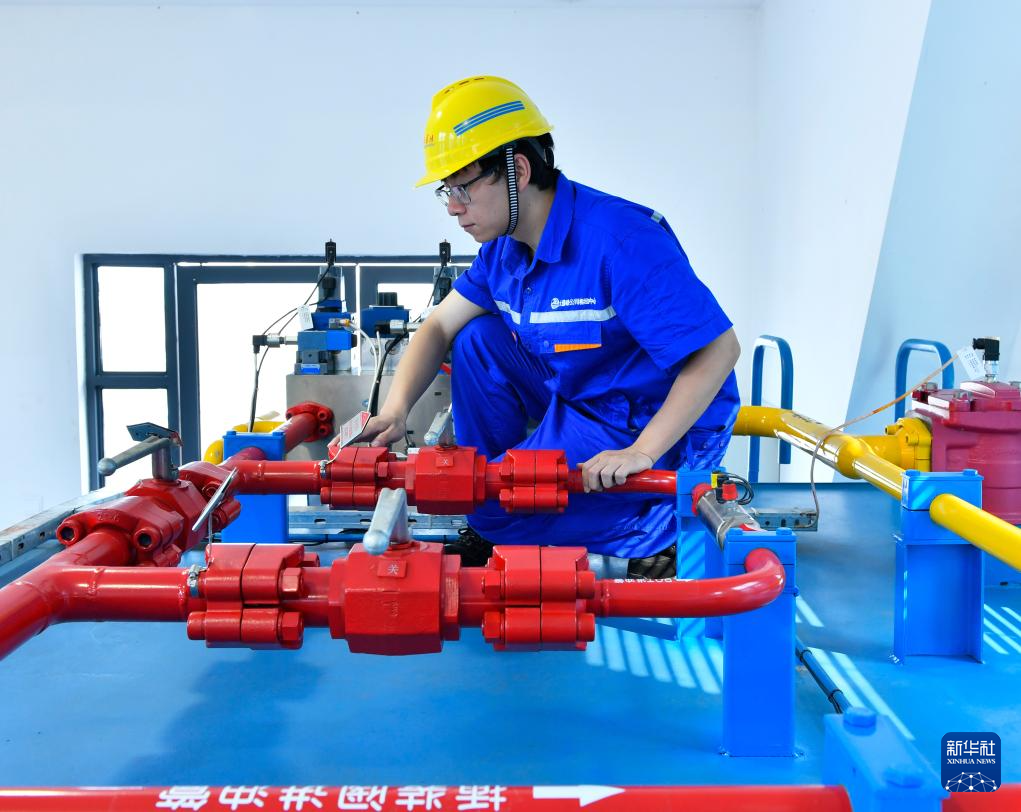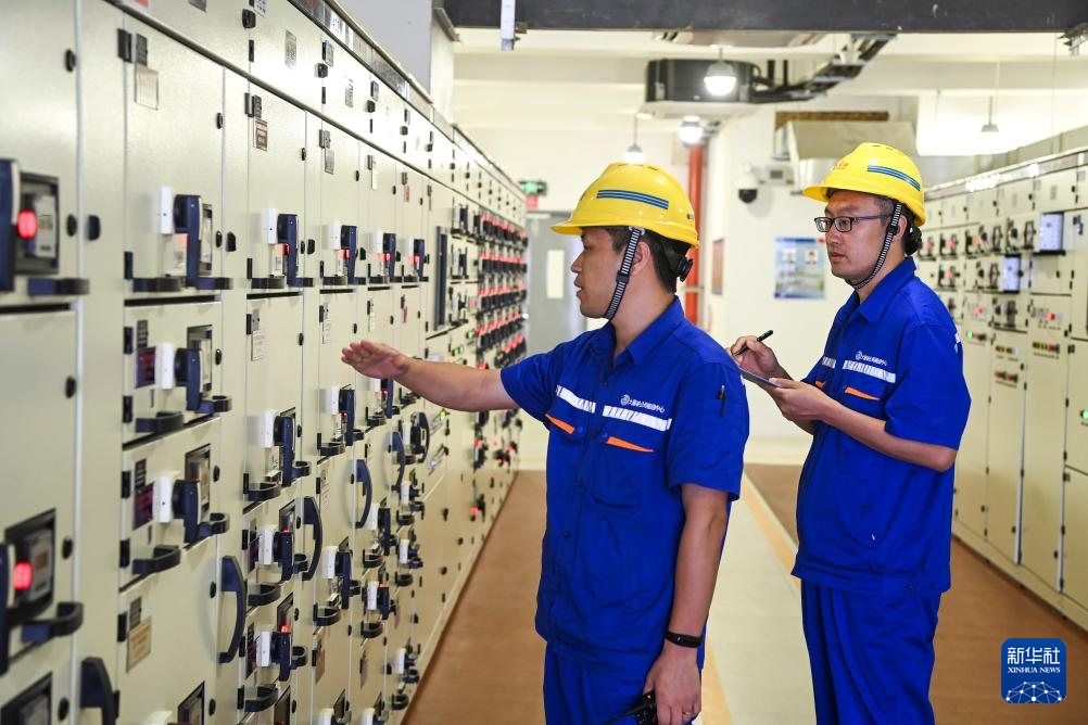 4月26日,在大藤峡水利枢纽工程,工作人员在启闭机室进行巡检。