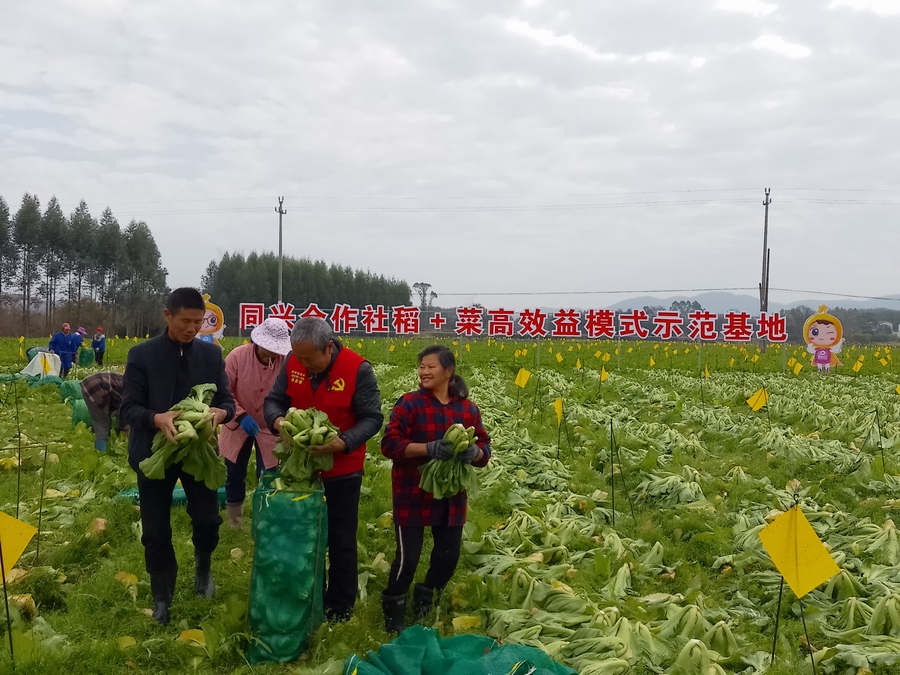 初夏时节,生机勃勃,在永福县苏桥镇良村同兴合作社“稻+菜”高效益模式示范基地的芥菜喜获丰收。