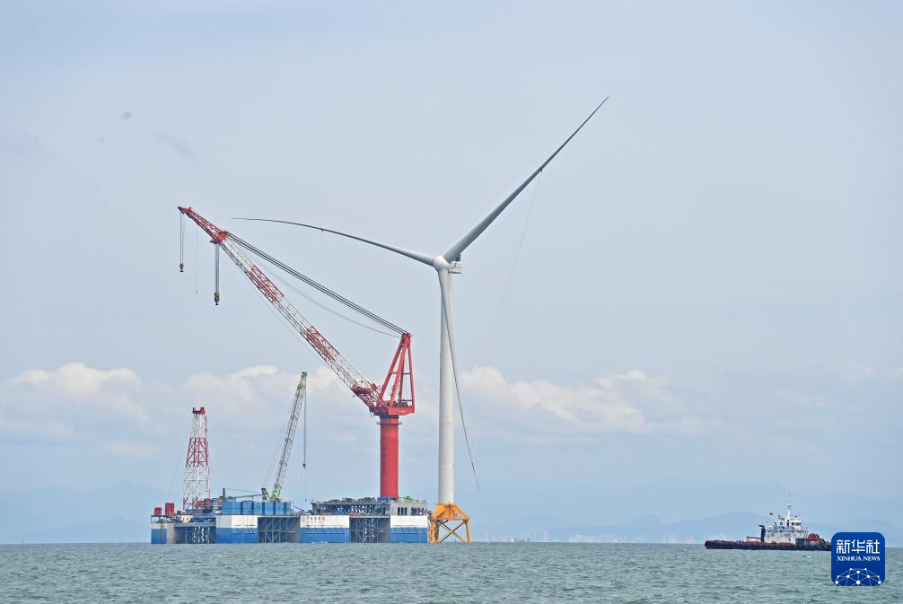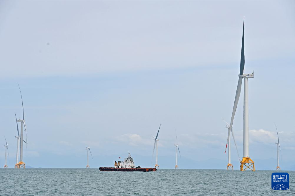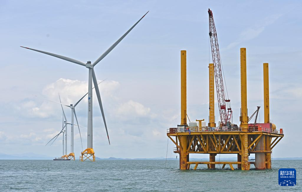 5月21日,记者前往广西首个海上风电示范项目——防城港海上风电示范项目A场址,探访正在加紧建设的海上风电场。该项目将建设83台单机容量8.5兆瓦及以上的风电机组。目前,已安装风电机组29台,其中15台已实现并网发电。