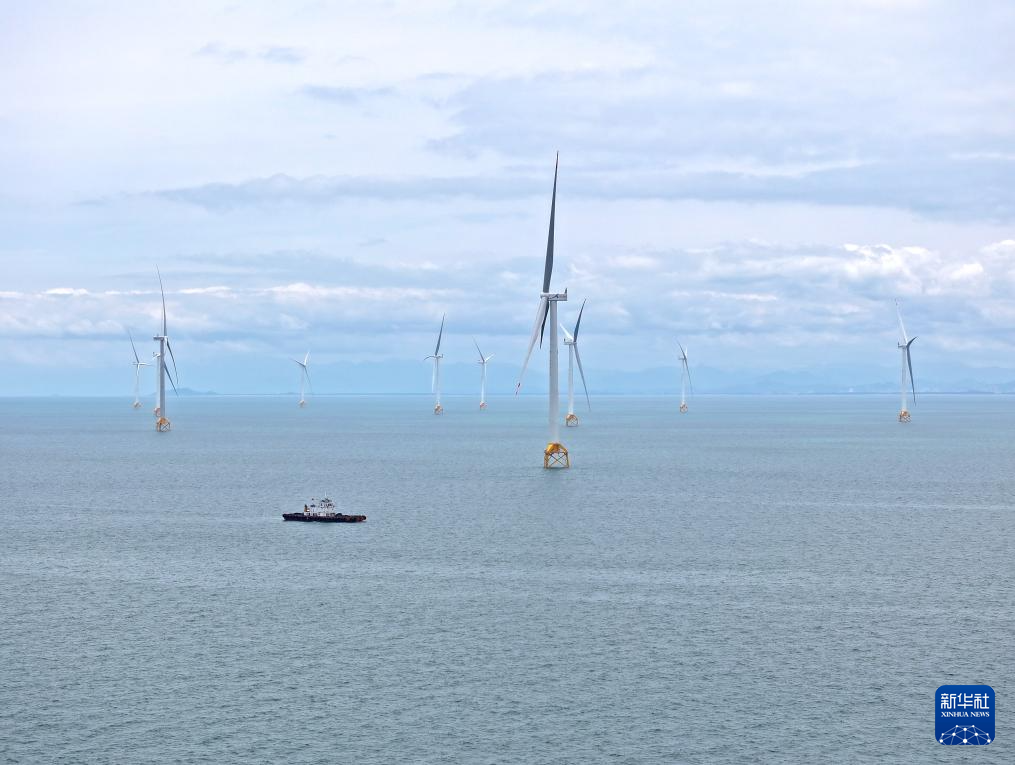 这是5月21日拍摄的海上风电机组(无人机照片)。