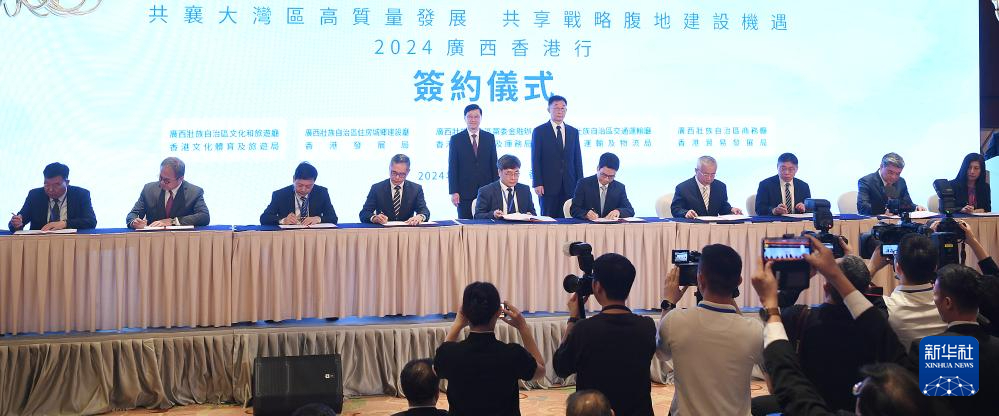 新华社香港5月22日电(记者黄茜恬)“共襄大湾区高质量发展 共享战略腹地建设机遇——2024广西香港行”活动22日在香港举行,桂港双方签约协议和项目共38个,携手推进两地全方位合作。