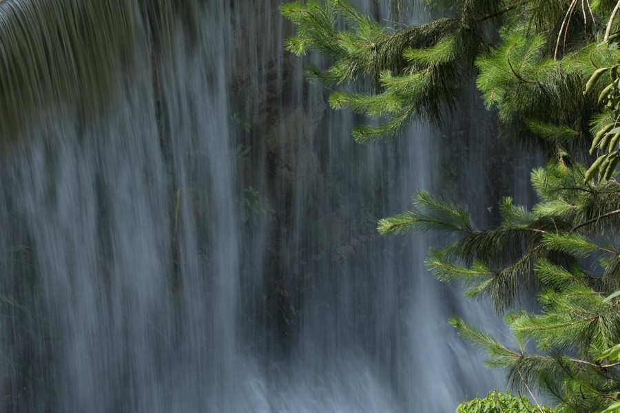 瀑布溅起层层白色水雾。凌钦章摄