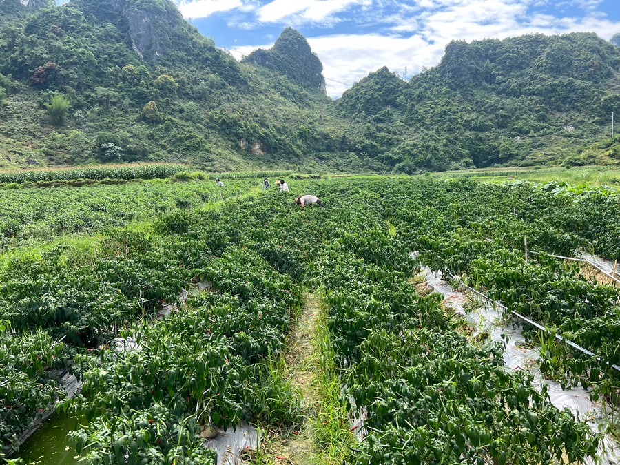 燕峒乡那茶村党支部书记农吉兴说:“我们那茶村种植辣椒共计350多亩,每亩产量约2000多斤,预计总收入达252万余元,都是本村农户自己来管护、采摘,既发展了辣椒产业,又盘活闲置土地资源,实现“地不荒、有收益”。”