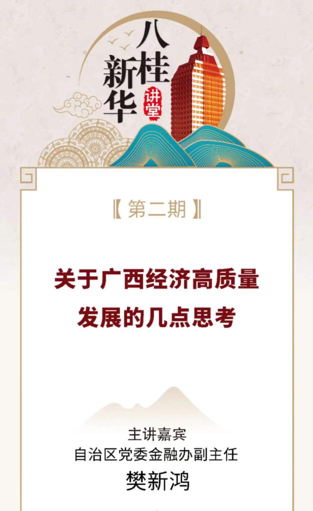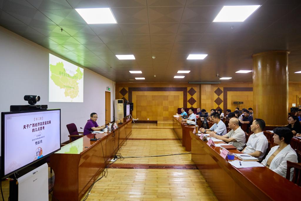 广西壮族自治区党委金融办副主任樊新鸿以“关于广西经济高质量发展的几点思考”为主题,作了精彩讲座。