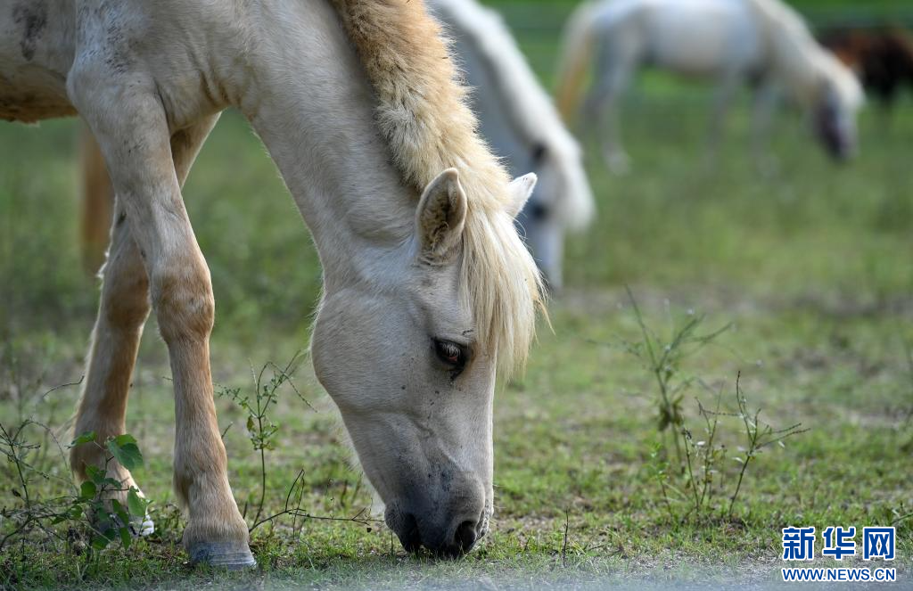 8月27日,在广西德保矮马王国,一群德保矮马在吃草。