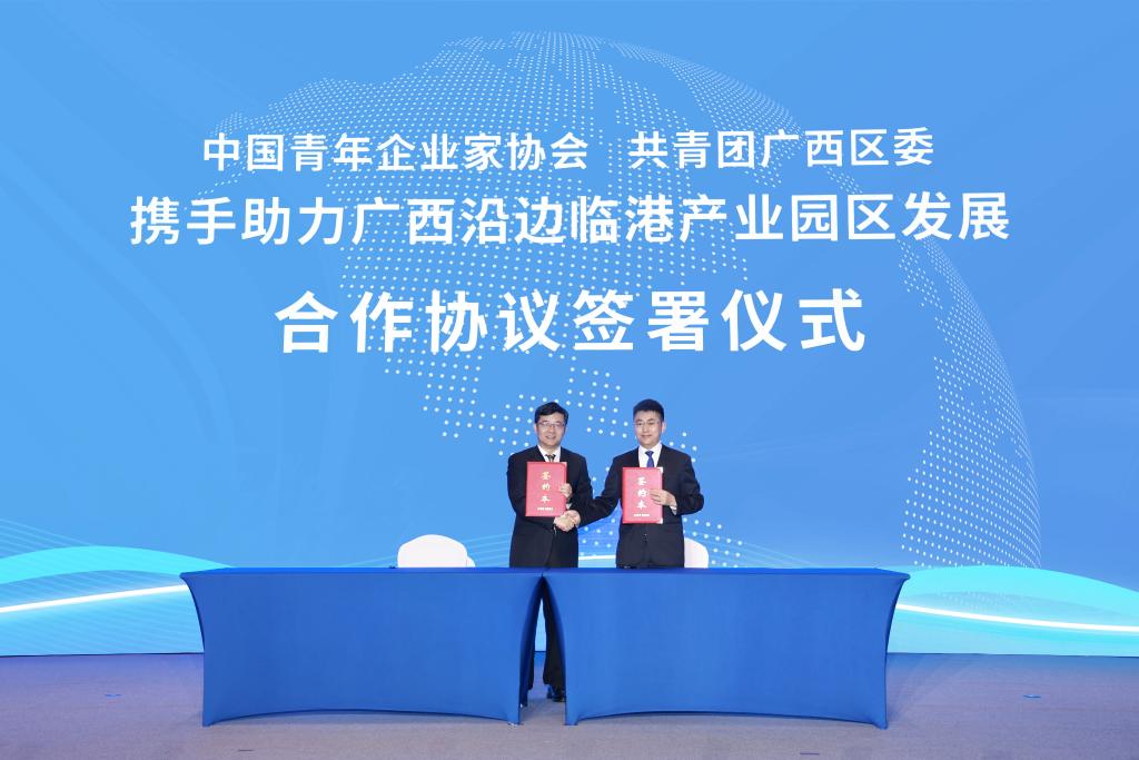 中国青年企业家协会与共青团广西区委签署《携手助力广西沿边临港产业园区发展合作协议》。共青团广西区委供图