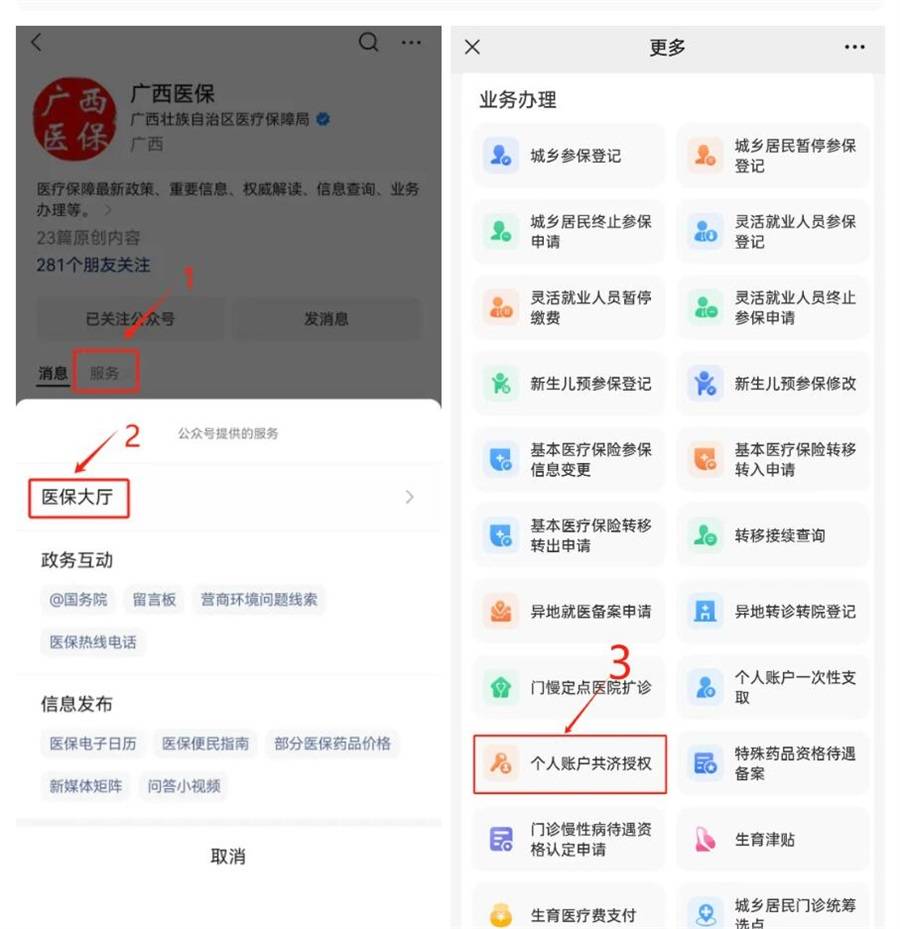 如何绑定共济账户?符合条件的可直接到各级医保经办窗口提交申请材料,也可通过广西医疗保障网上服务大厅、广西数字政务一体化平台、“广西医保”微信公众号等任一平台网上申报。网上申报无需材料。