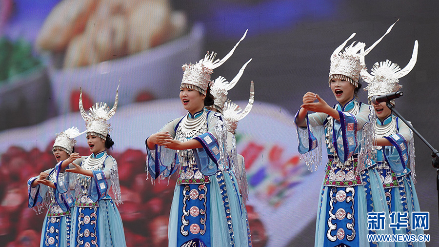 庆祝大会结束后,随着舞蹈《盛世铜舞》的音乐声响起,文艺表演在一片热烈的掌声中拉开帷幕,演员们身着节日盛装,用优美的舞姿、动听的歌声庆祝苗乡成立40周年。