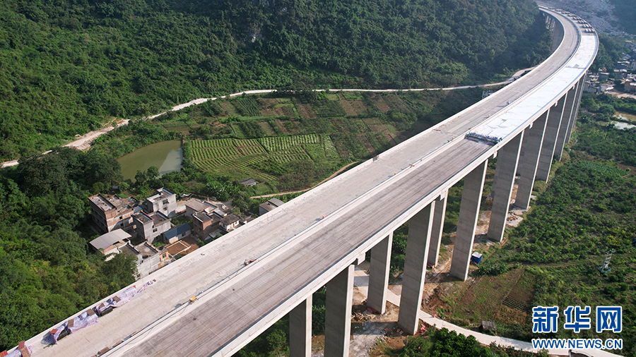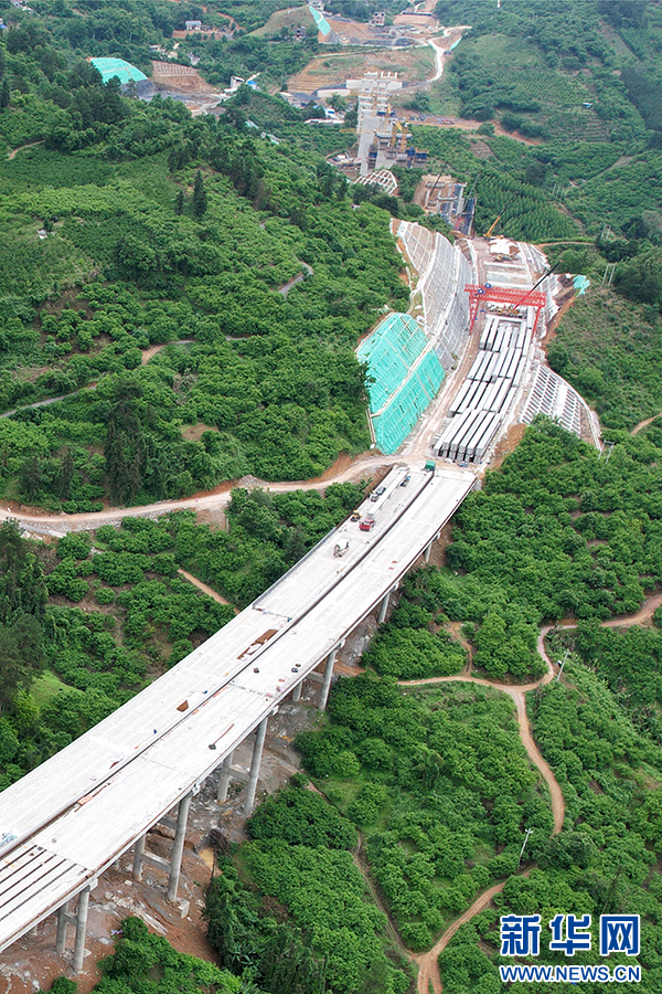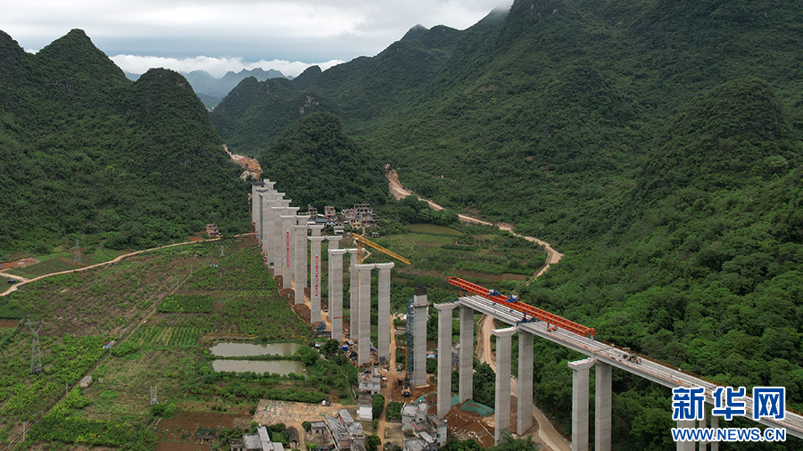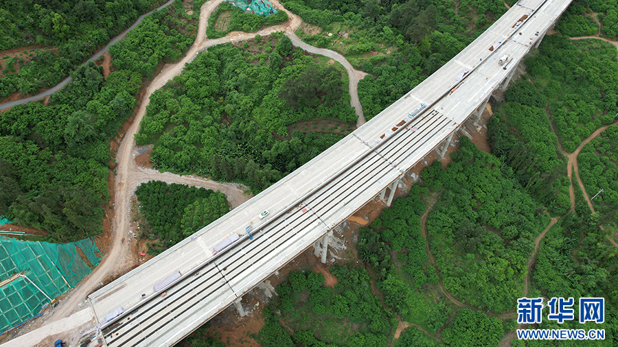 中交路建平昭高速TJ1分部栽培嵅大桥T梁架设。(朱慧 摄)