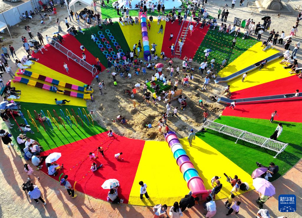 10月2日,市民在广西南宁沙雕艺术主题乐园游玩。