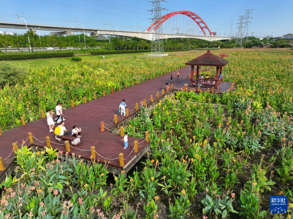 10月2日,市民在广西南宁那考河湿地公园游玩。