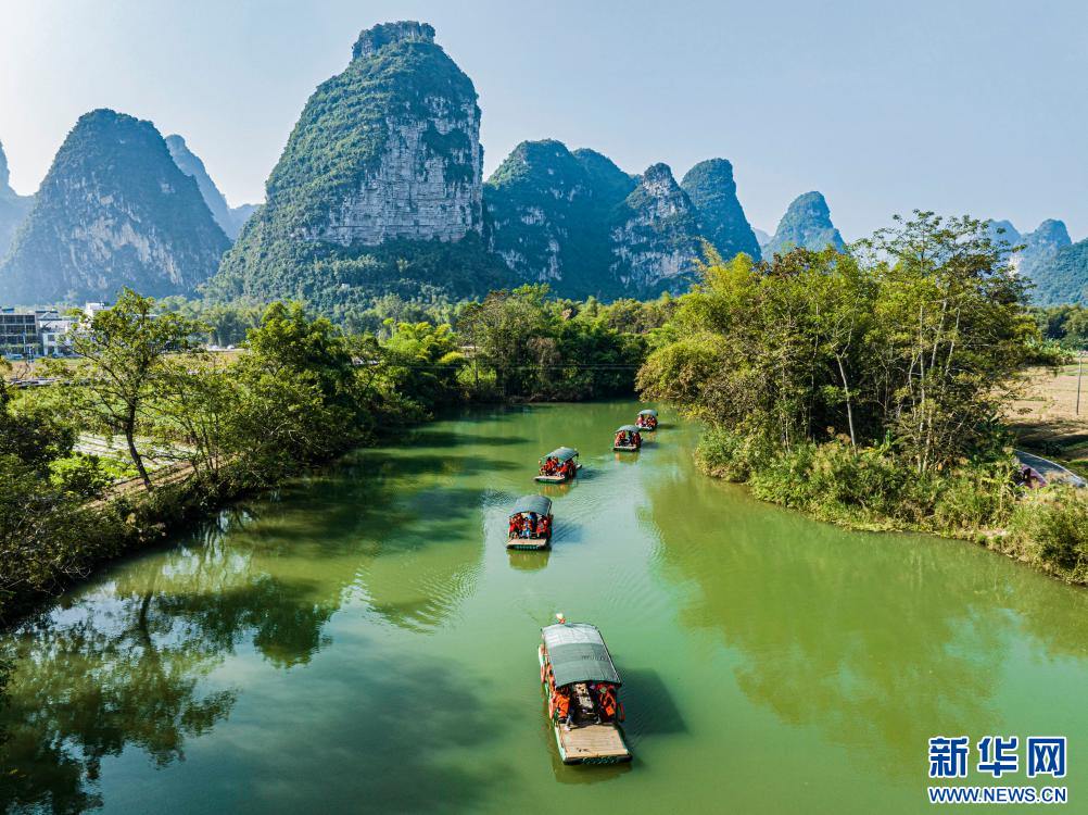 游客乘舟游览广西崇左市大新县明仕河(资料照片)。新华社发(刘峥 摄)