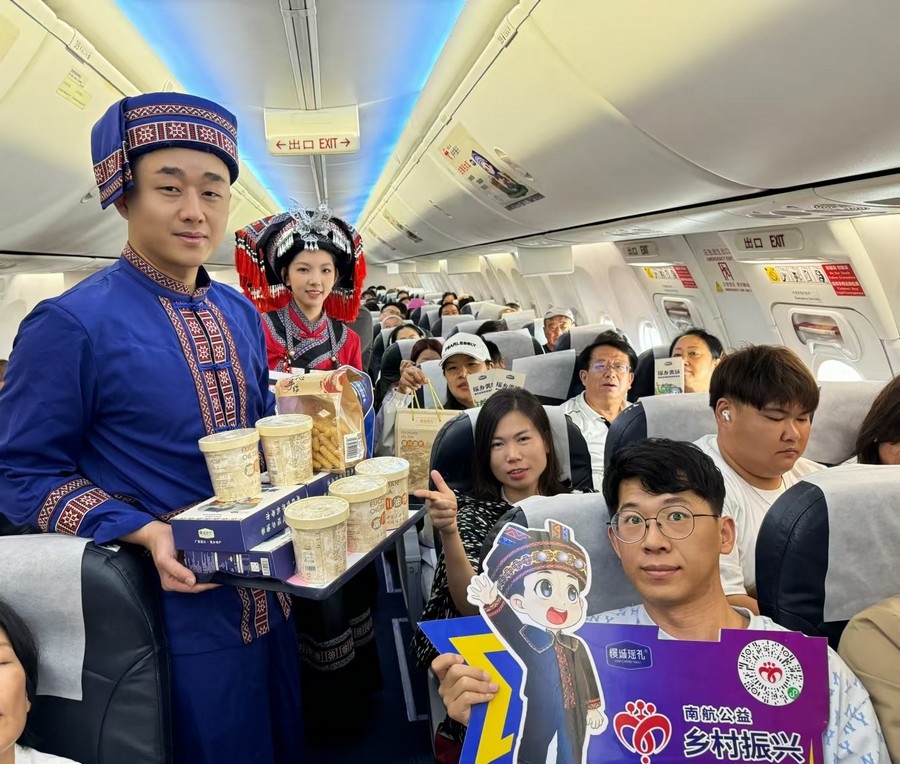 10月16日,中国南方航空股份有限公司(以下简称“南航”)在广西始发的多个航班上开展主题为“云端绘梦 振兴乡村”的消费帮扶活动,让广西当地优质农产品在航班上进行推广销售,助力乡村振兴。