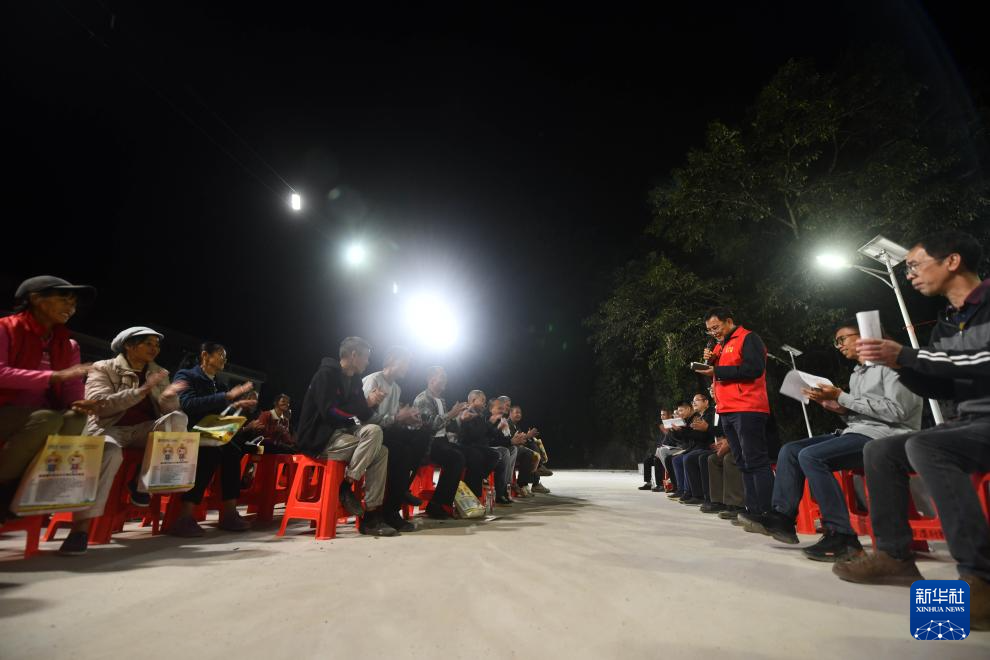 夜幕降临,一盏盏路灯将广西百色市德保县那造村的夜色点亮。妇女们在排练稻田文化艺术节节目、驻村工作队开展“乡村夜话”与村民交流致富信息、技术人员在种植基地里忙碌……大山深处,人们星夜兼程,共同奏响乡村振兴奋进曲。
