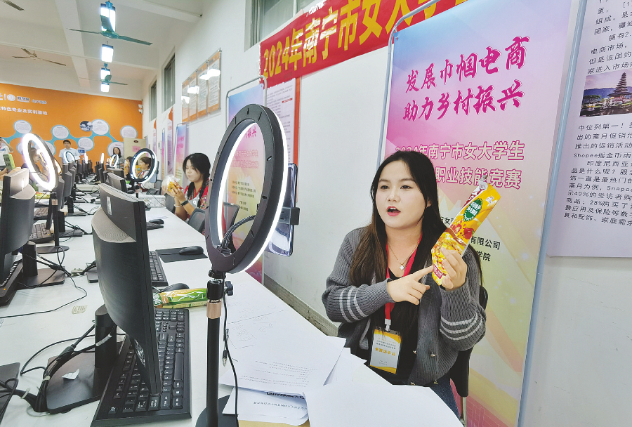11月9日,由南宁市妇女联合会主办的2024年南宁市女大学生直播销售职业技能竞赛(以下简称“直播销售技能竞赛”)决赛在南宁职业技术大学举行。